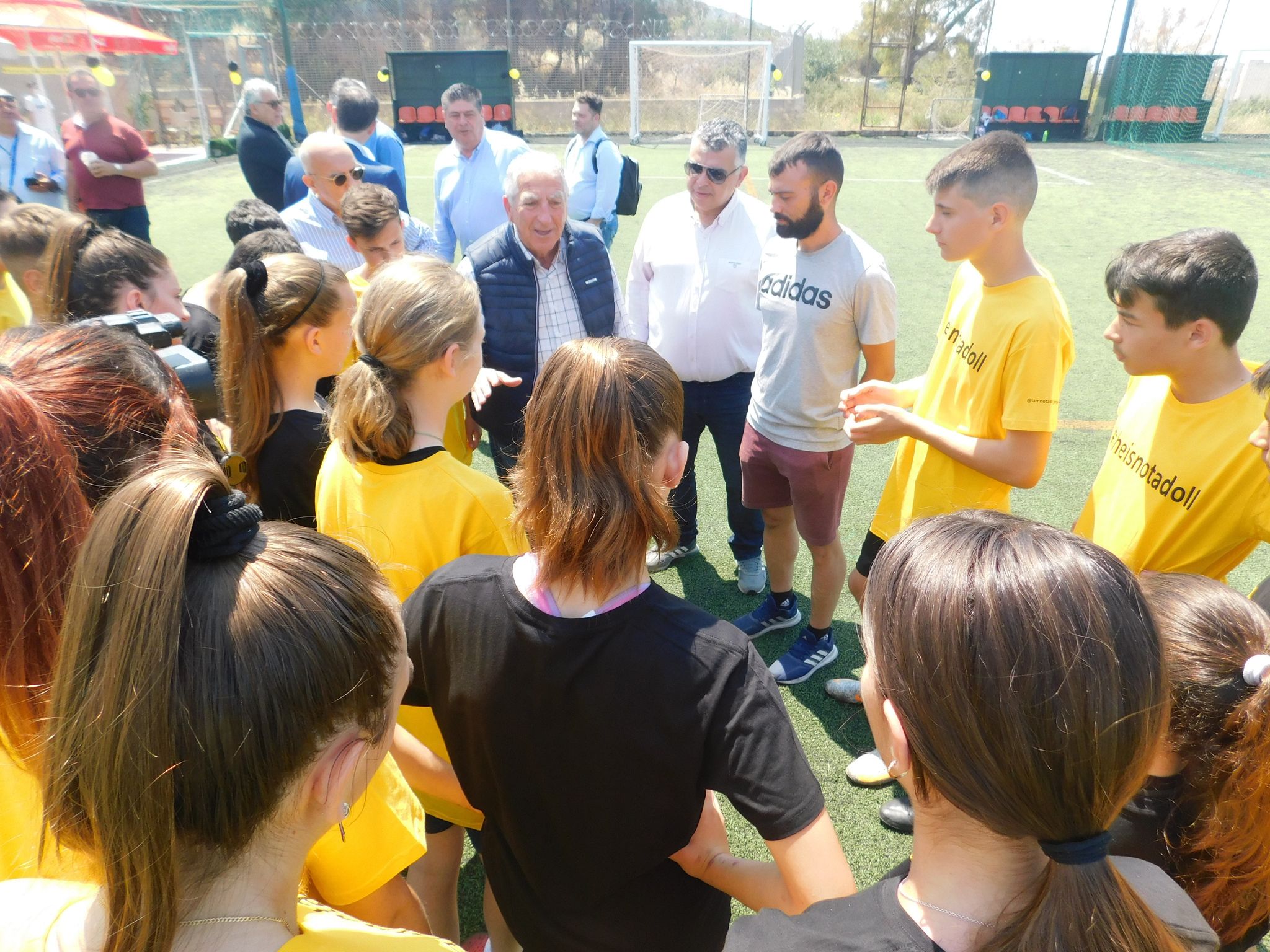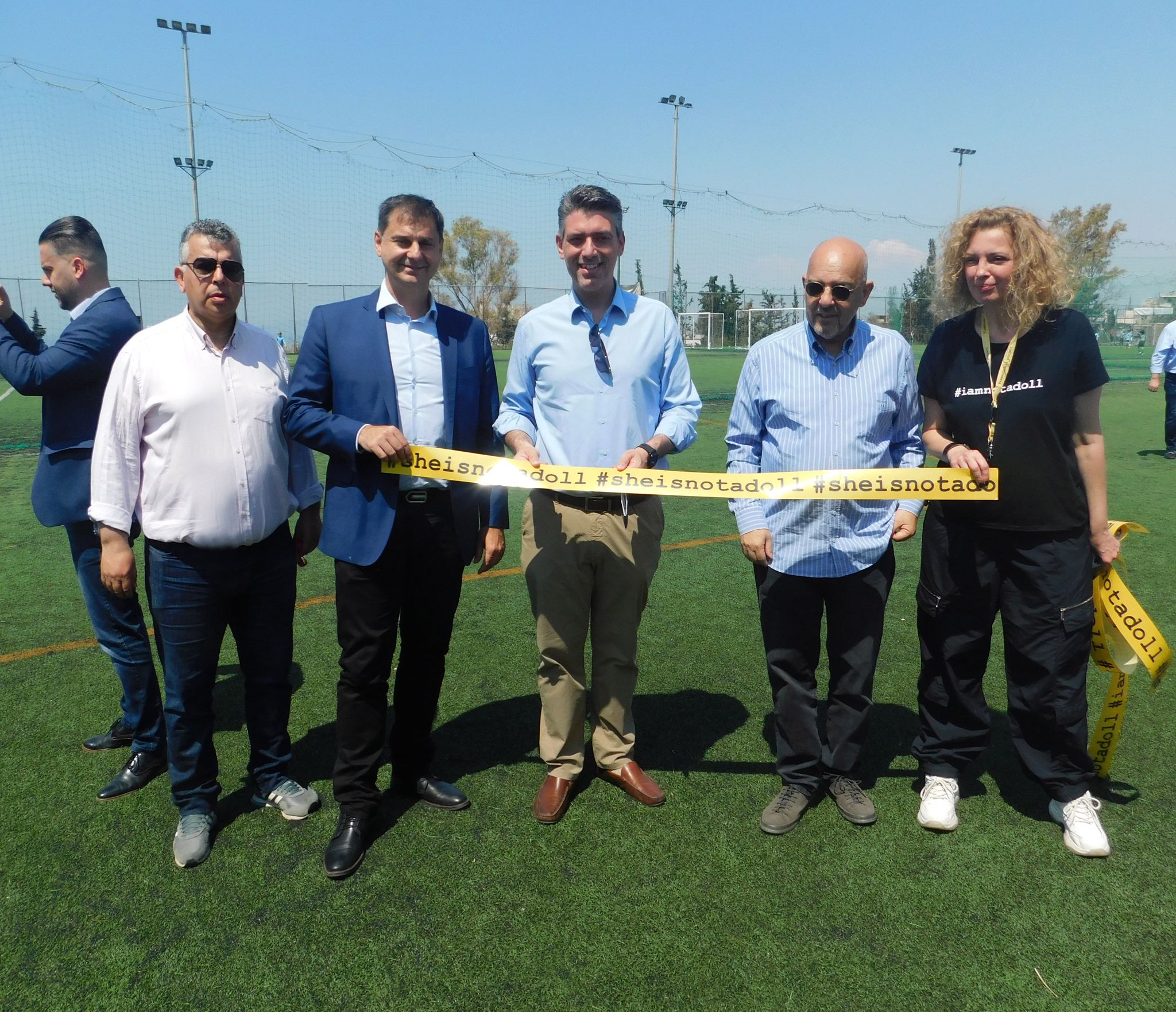 Το «παρών» στο φιλικό αγώνα κατά της Έμφυλης Βίας, που διοργάνωσε η Β3 ΔΕΕΠ και η ΔΗΜΤΟ Αλίμου, στο 4ο Αθλητικό Κέντρο Ηλιούπολης, έδωσε ο επικεφαλής της παράταξης «η Πόλη που Θέλω», Γαβριήλ Αραμπατζής, δίνοντας ένα ηχηρό μήνυμα κατά της Έμφυλης βίας, η οποία τα τελευταία χρόνια έχει γίνει εντονότερη από ποτέ, λαμβάνοντας εκρηκτικές διαστάσεις. Στο φιλικό αγώνα αγωνίστηκαν ομάδες νέων αγοριών και κοριτσιών του Φοίνικα Καλλιθέας και άλλων αθλητικών συλλόγων. Ξεχωριστό «χρώμα» στην εκδήλωση έδωσαν τα γλυπτά του project «I am a not a doll», που προωθεί την προσπάθεια καταπολέμησης κάθε μορφής Έμφυλης Βιας και εκμετάλλευσης. Τα γλυπτά φέρουν την «υπογραφή» της εικαστικού Ιωάννας Παρασκευά. Μετά το πέρας των αγώνων η εικαστικός κ Παρασκευά απένειμε επαίνους στους αθλητές και τις αθλήτριες ευχαριστώντας τους για την ευγενική συμμετοχή τους, ενώ τα παιδιά προσέφεραν το κύπελλο που κέρδισαν, στα γλυπτά που συμβολίζουν όλες τις μορφές της Έμφυλης Βίας.