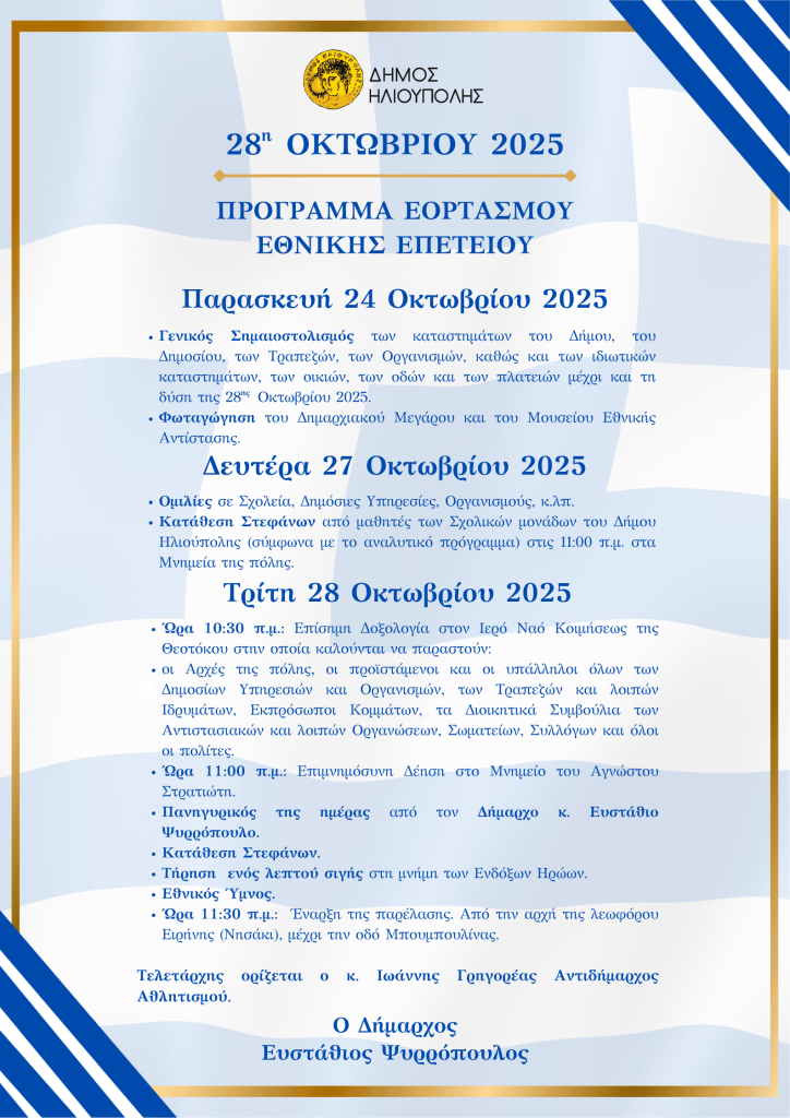 ΠΡΟΓΡΑΜΜΑ ΕΟΡΤΑΣΜΟΥ ΕΘΝΙΚΗΣ ΕΠΕΤΕΙΟΥ 28ης Οκτωβρίου 2025